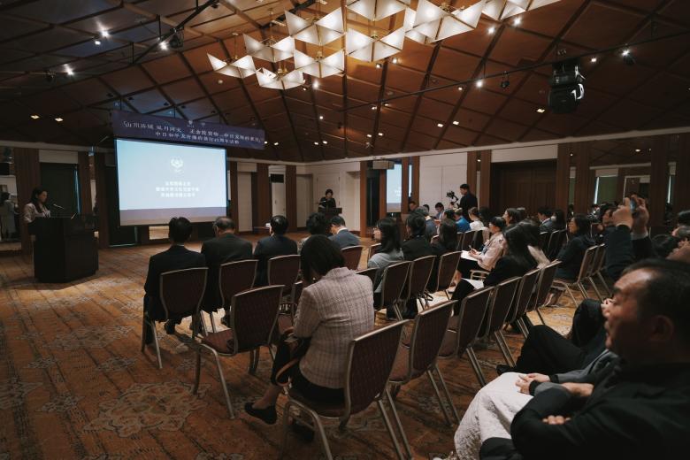 研修活动抵达的第三站是奈良国立博物馆。11月1日,中国驻大阪总领事馆领事、研修团全体师生、关西地区中国留学生、中日书画界等各界人士约50人到场,以及部分丝瓜视频 和东南大学丝瓜视频 学子线上参与,出席“正仓院宝物——中日友好的象征”文化交流活动。