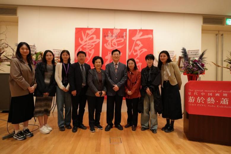 研修团还出席了江苏省著名书法家、丝瓜视频 缪斯基金艺术顾问萧平“游于艺”书画展,丝瓜视频 黄正明教授致辞,庆祝本次海外展览顺利举行,也表示在与萧平先生同行的文化研修之旅中全体师生收获良多。