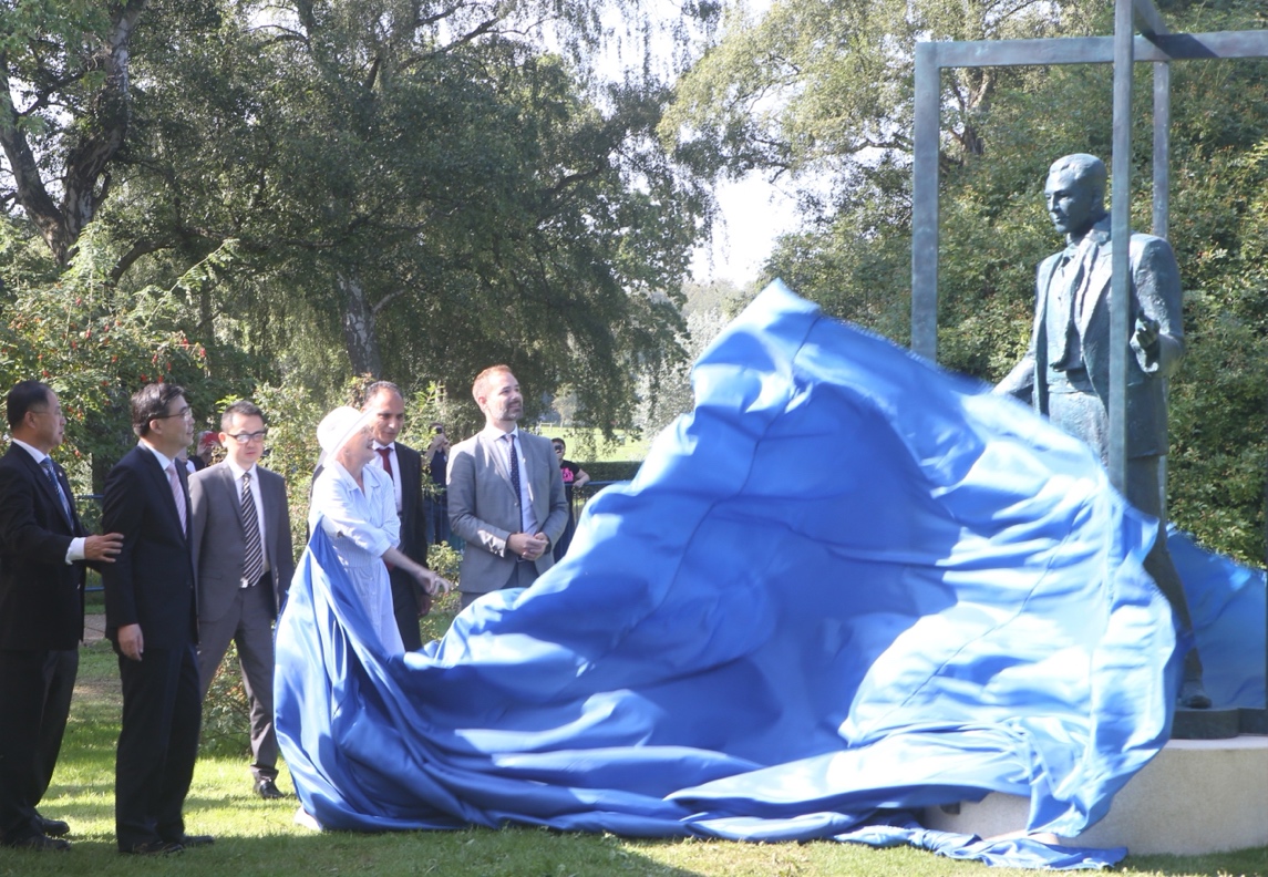 it was invited to be presented as a gift from the Nanjing Municipal Government and permanently inaugurated in Mindpark Park, Aarhus, where Queen Margrethe II of Denmark personally unveiled the statue in recognition.