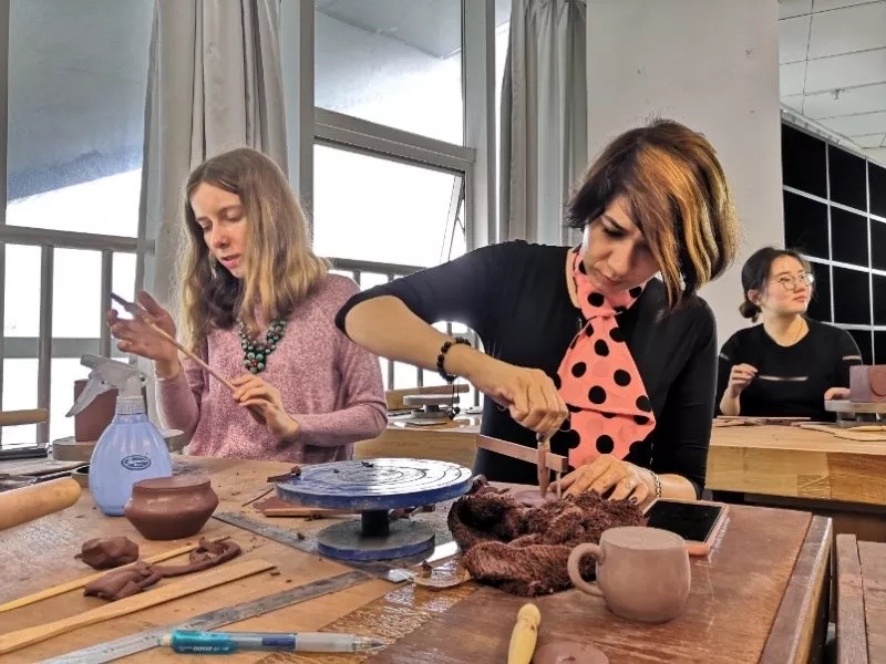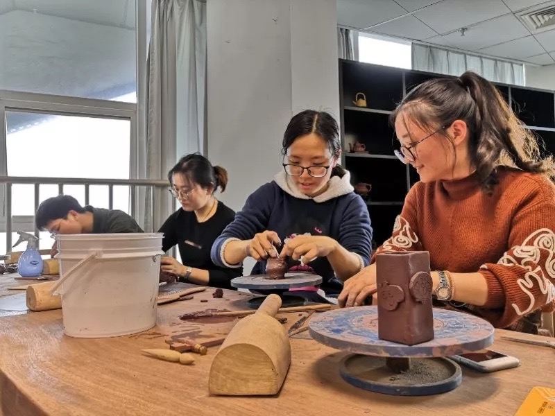 在教学方面,本基地目前已经开设了“紫砂文化与紫砂艺术”、“紫砂艺术与中国书画专题研究”等核心课程,受到学生的普遍欢迎和一致好评。并以书画文化、紫砂泥塑、结构素描素描等多元的艺术形式作为辅助,与核心课程联动,打造为“紫砂文化课程群”。以课堂教学为主渠道,理论与实践相结合,传承中华优秀文化与紫砂艺术。